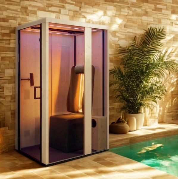 Die vollausgestattete Premiumkabine mit elektrisch verstellbarem ONE-PREMIUM Infrarotsessel, intelligenter Echtzeit-Wärmeregelung und maximalem Komfort. Ideal für alle, die höchste Ansprüche an Design und Funktion haben.