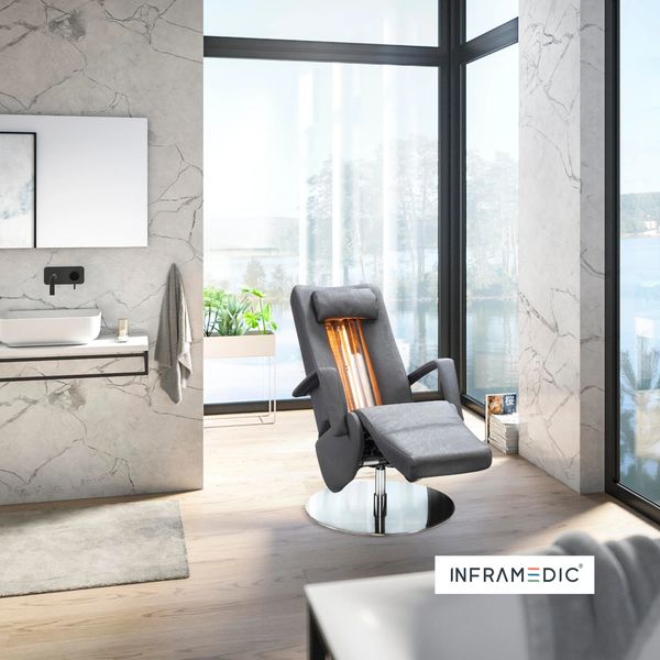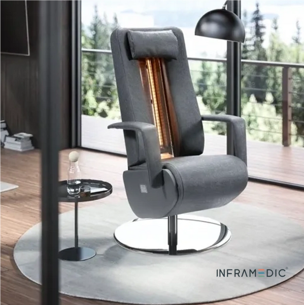 INFRAMEDIC Infrarotsessel kombinieren ergonomische Sitz- und Liegepositionen mit intelligenter Echtzeit-Wärmeregelung. Die patentierte SAFETY-SENSE® Technologie erfasst die Hauttemperatur berührungslos und passt die Infrarotabgabe automatisch an – für eine gleichmäßige, angenehm dosierte Wärme.