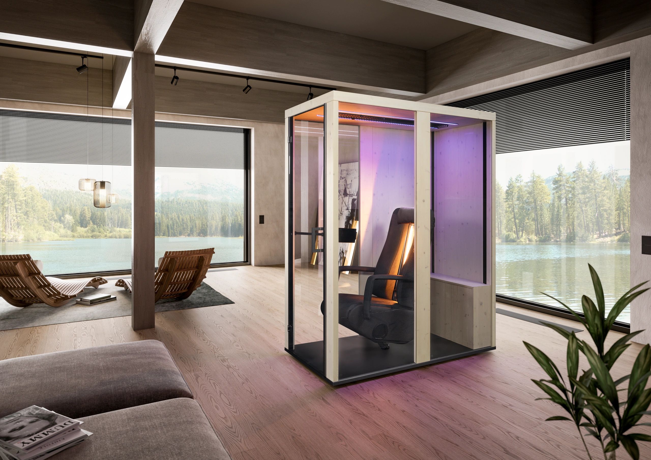 Diese kompakte Infrarotkabine ist mit verstellbaren Komfortsesseln sowie einer sensorgesteuerten Infrarottechnologie von INFRAMEDIC ausgestattet. Sie eignet sich ideal für Wohnräume, Home-Spas und Ruhezonen.